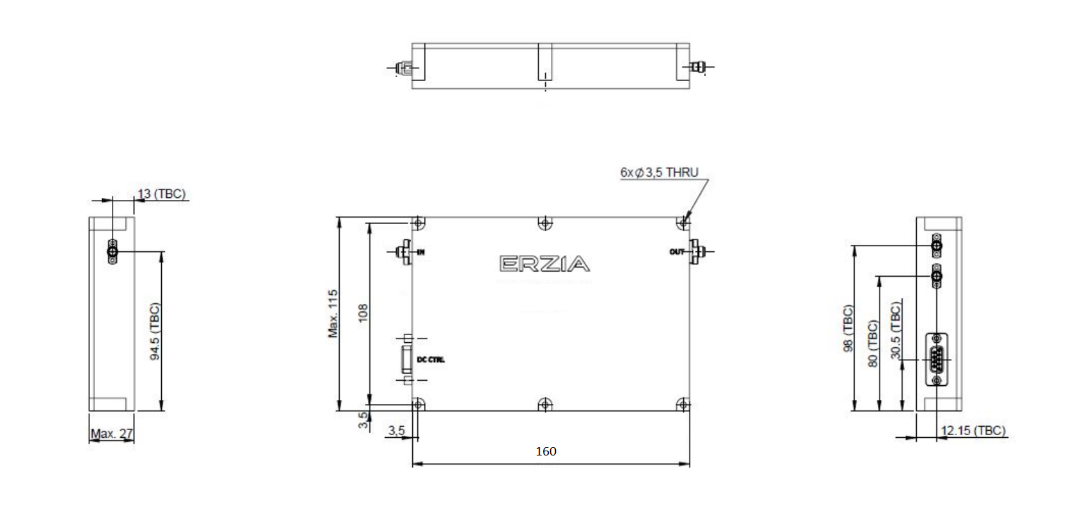 The ERZ-HPA-0002-0600-42 is a High Power Amplifier providing an output power of 42 dBm and a gain of 38 dB. The compact size and modularity makes it ideal for a wide range of applications.