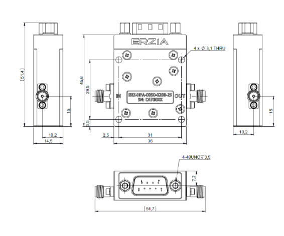 The ERZ-HPA-0050-0200-25 is a High Power Amplifier providing an output power of 28 dBm and a gain of 27 dB. The compact size and modularity makes it ideal for a wide range of applications.