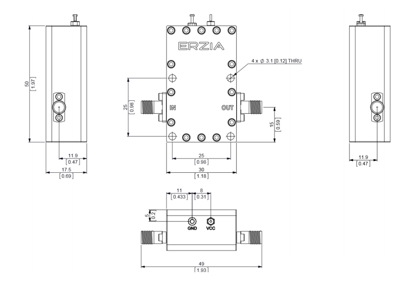 The ERZ-HPA-1250-1550-34 is a Ku Band Amplifier providing up to 34 dBm and a gain of 26 dB. The compact size and modularity makes it ideal for a wide range of applications.