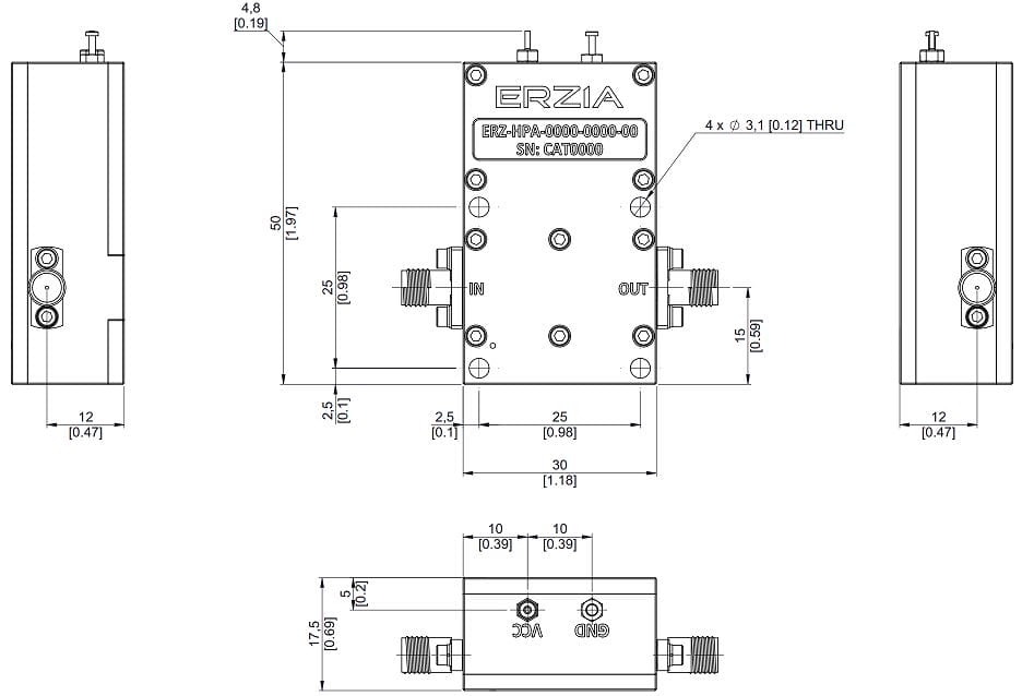 The ERZ-HPA-2600-4000-33 is a High Power Amplifier covering the full Ka band and providing an output power of 33 dBm and gain of 35 dB. The compact size and modularity makes it ideal for a wide range of applications.