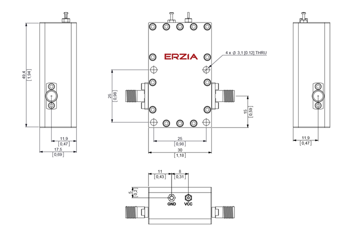 The ERZ-HPA-2900-3100-37-E is a Ka Band Amplifier providing 36 dBm and a gain of 30dB. The compact size and modularity makes it ideal for a wide range of applications.