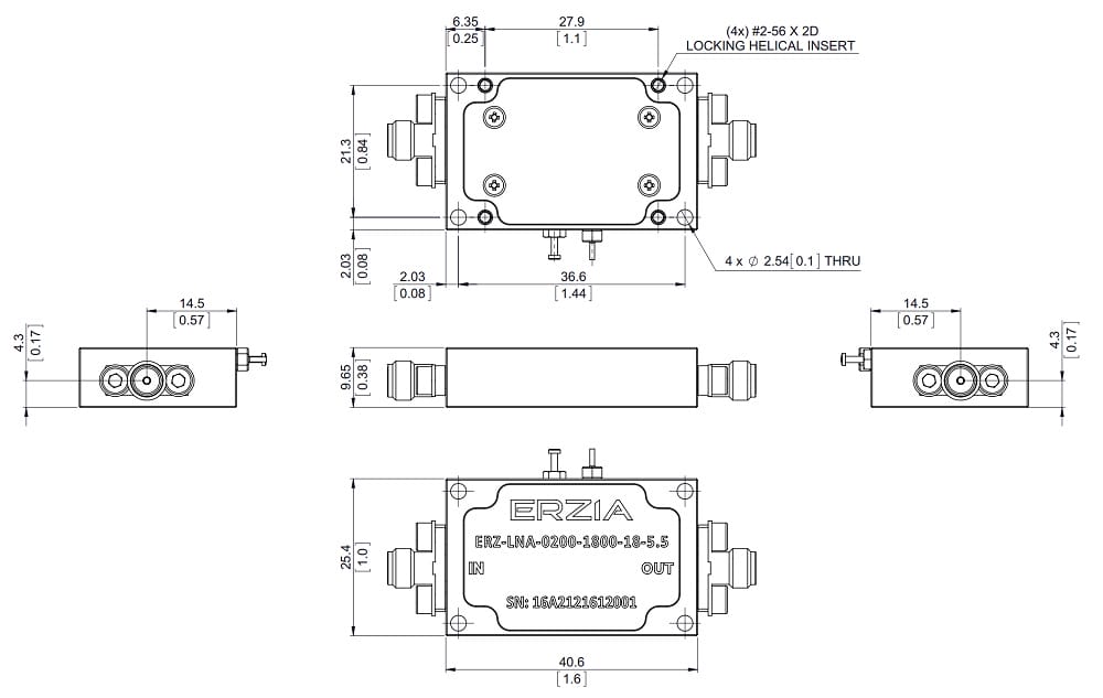 The ERZ-LNA-0200-1800-18-5.5 is a Low Noise Amplifier providing a gain of 18 dB with a noise figure of 3 dB. The compact size and modularity makes it ideal for a wide range of applications.