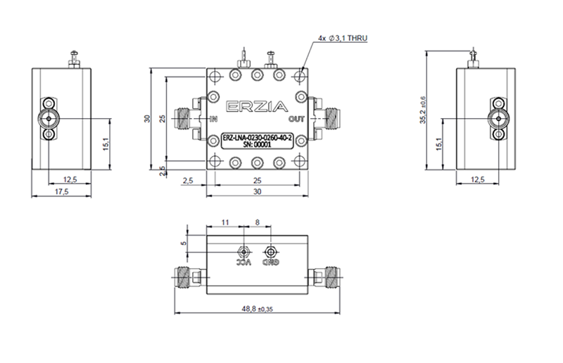 The ERZ-LNA-0230-0260-40-2.5 is a Low Noise Amplifier providing a gain of 40 dB with a noise figure of 2.5 dB. The compact size and modularity makes it ideal for a wide range of applications.