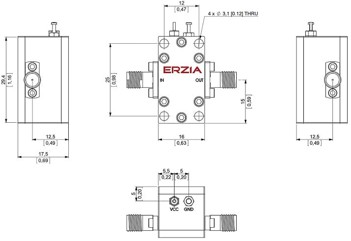 The ERZ-LNA-0340-0470-13-2 is a Low Noise Amplifier providing a Small Signal Gain of 16 dB and a Noise Figure below 2 dB. The compact size and modularity makes it ideal for a wide range of applications.
