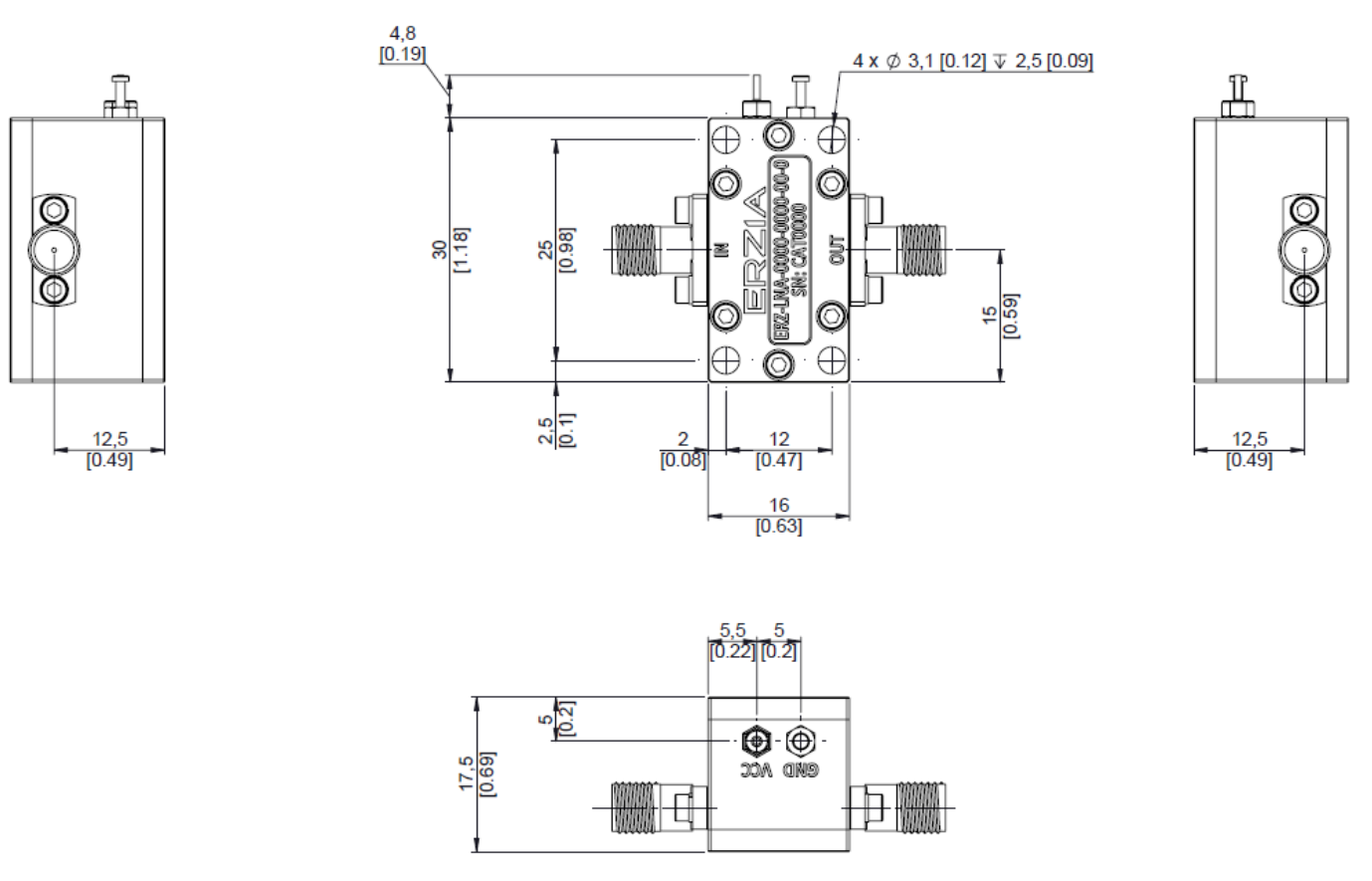 The ERZ-LNA-1000-1600-15-2.5 is a Low Noise Amplifier that provides a Noise Figure of 2.5 dB with a Gain of 15 dB