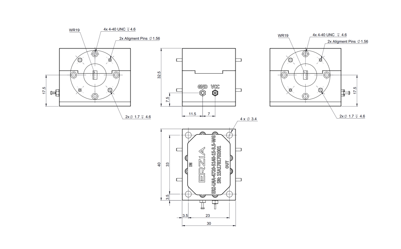 The ERZ-LNA-4720-5140-15-3.5 is a V band low noise amplifier providing a gain of 15 dB and a noise figure below 3.5 dB. The compact size and modularity makes it ideal for a wide range of applications.