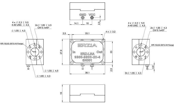 The ERZ-LNA-9300-9500-20-4 is a Low Noise Amplifier providing a gain of 20 dB with a noise figure of 4 dB. The compact size and modularity makes it ideal for a wide range of applications.